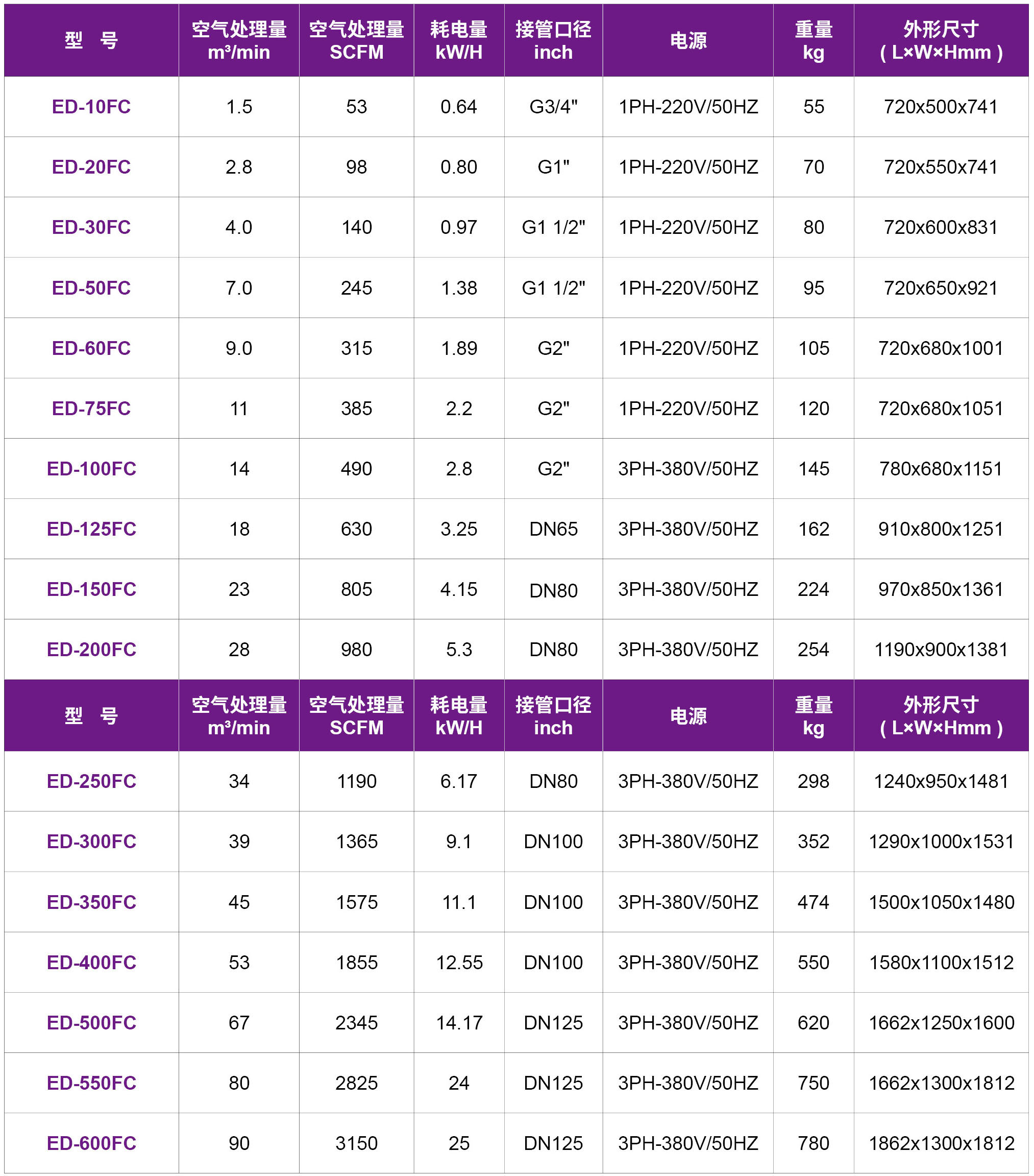 Điểm sương thấp: Trong điều kiện làm việc tiêu chuẩn, điểm sương áp suất có thể đạt dưới 5°C và điểm sương áp suất bình thường của không khí thoát ra có thể đạt tới dưới -20°C.